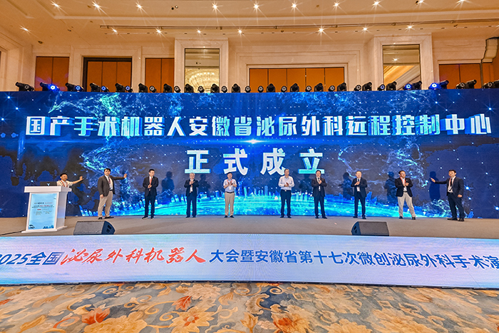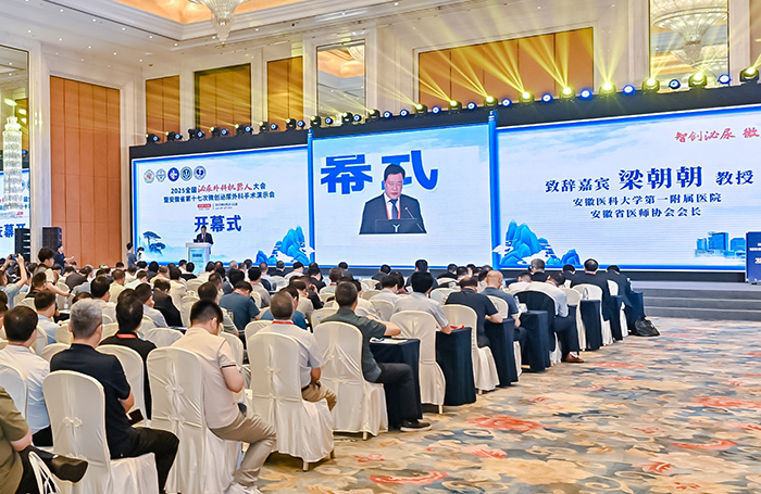 6月20日至22日,由安徽省医学会、安徽省医师协会主办,我校第一附属医院承办的2025全国泌尿外科机器人大会暨安徽省第十七次微创泌尿外科手术演示在合肥举行。中国科学院院士、中国人民解放军总医院泌尿外科医学部主任张旭,安徽省卫生健康委员会副主任杨绪斌,中华医学会泌尿外科分会(CUA)主任委员黄健教授,中国医师协会男科与性医学分会会长、第一附属医院泌尿外科学科带头人、学校首届“徐叔云讲席教授”梁朝朝教授出席开幕式。